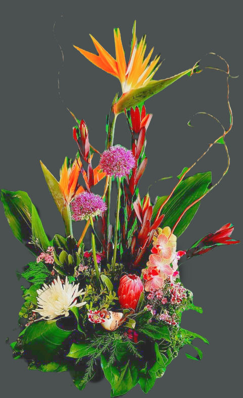 We recommend calling to place your order for Exotic/Tropical Arrangements to confirm availability and price.